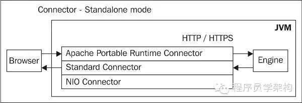 在独立模式下,Tomcat会配置HTTP和HTTPS连接器,这可以使Tomcat看起来更像完整的web服务器以处理静态请求内容同时还委托Catalina引擎来处理动态内容。