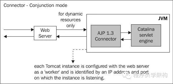 在Tomcat端,通过AJP连接器来接收wen服务器的请求,并将请求解释为Catalina引擎可处理的格式。